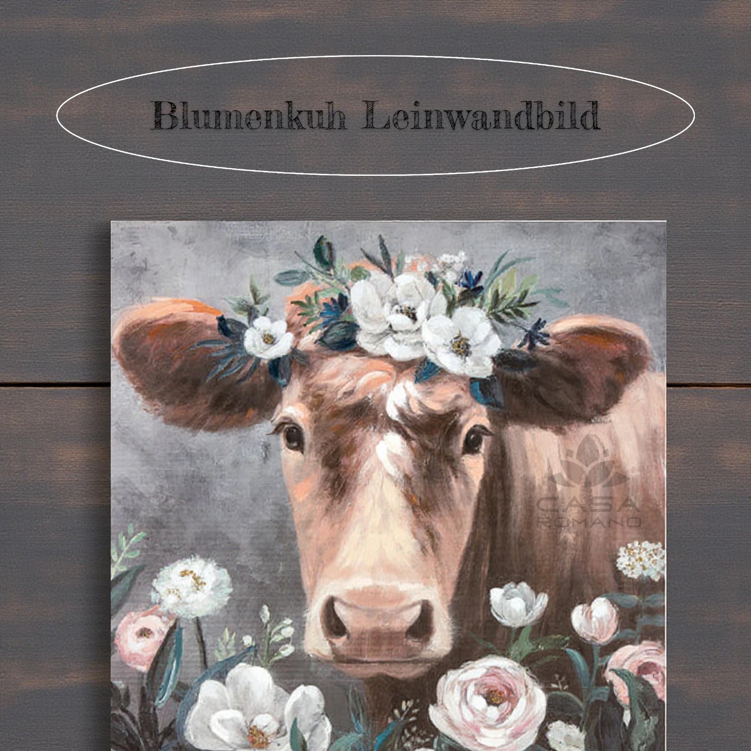 âBlumenkuhâ â Quadratisches Leinwandbild mit Kuhmotiv