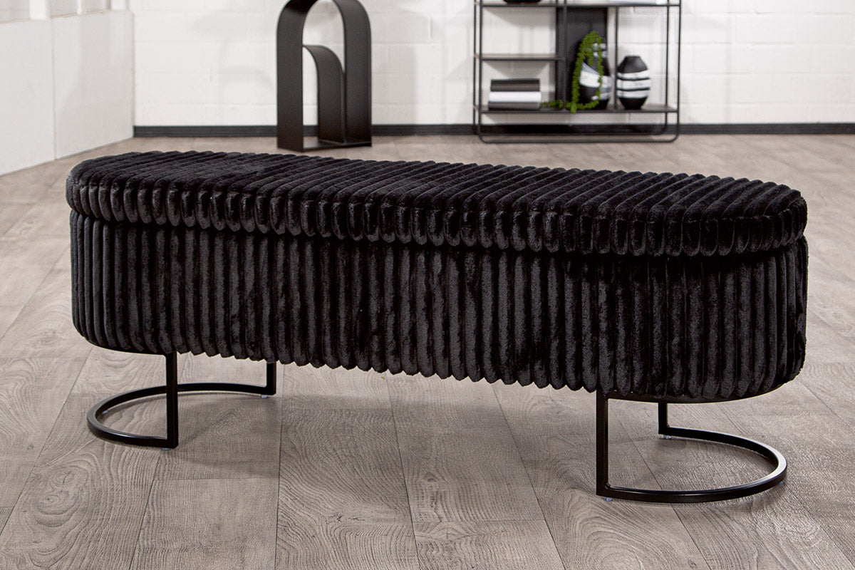 Die elegante Sitzbank âBrooklynâ ĂŒberzeugt durch ihr modernes Design und praktische FunktionalitĂ€t. Der weiche Stoffbezug in edlem Schwarz verleiht ihr eine luxuriöse Note, wĂ€hrend das stabile Gestell mit seinen geschwungenen Beinen fĂŒr einen modernen Look sorgt.