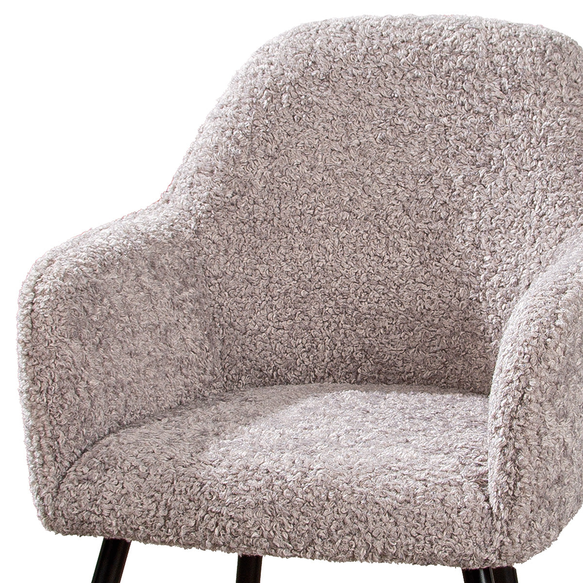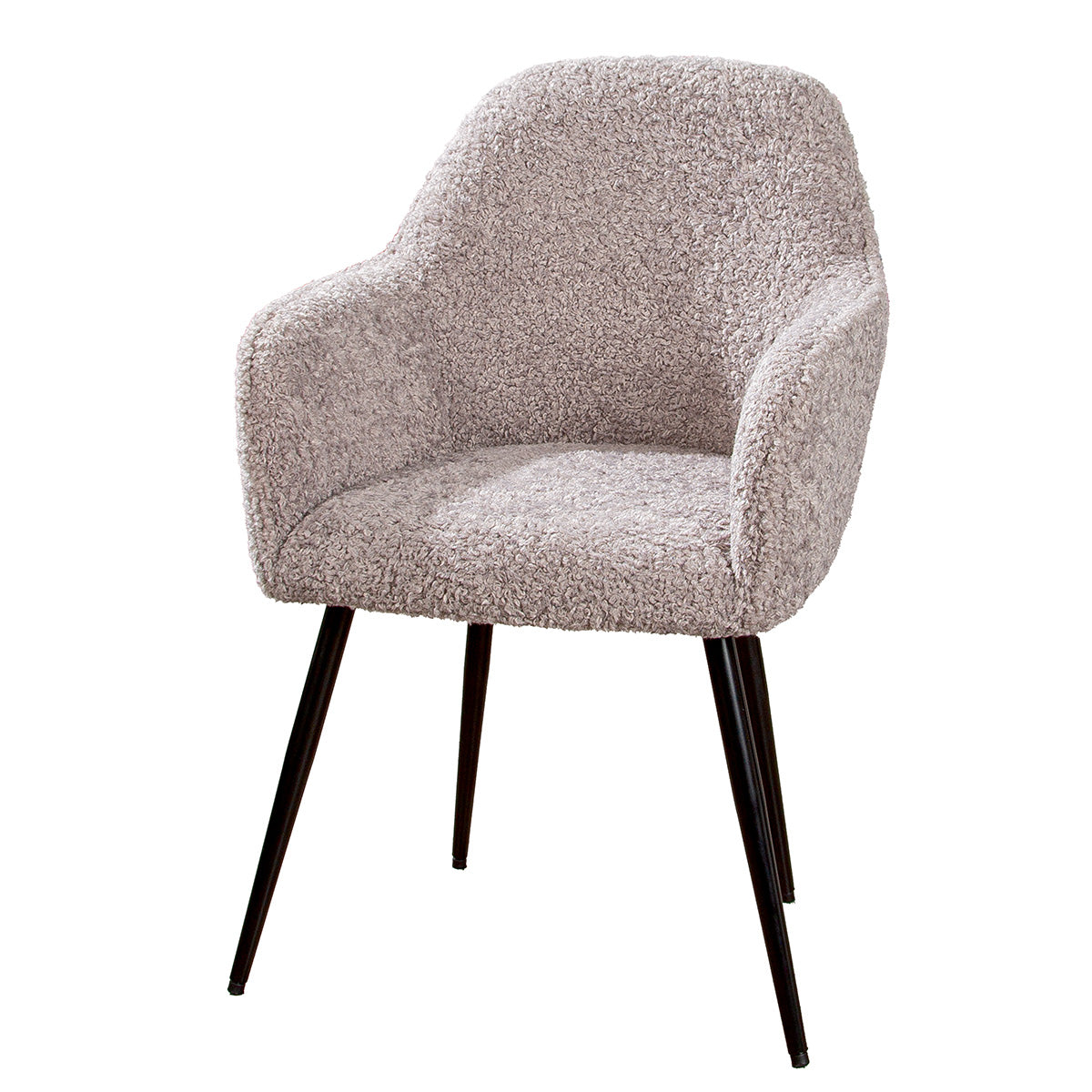 Der weiche Stoffbezug in Grau und die elegant geschwungenen Armlehnen sorgen fĂŒr eine gemĂŒtliche Sitzposition, wĂ€hrend die schwarzen Metallbeine dem Sessel einen modernen Kontrast verleihen.