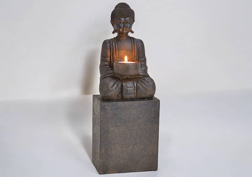 Ästhetisches Design: Buddha-Skulptur mit integriertem Teelichthalter.