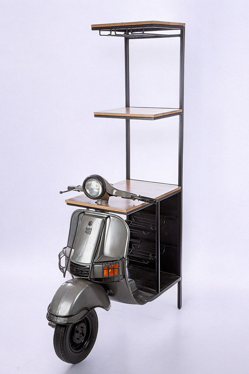 Bringen Sie urbanen Loft-Style in Ihr Zuhause! Der Bar Roller kombiniert ein originales Roller-Frontdesign mit edlem Mangoholz und stabilem Metallrahmen – ein Möbelstück, das sofort zum Gesprächsthema wird.